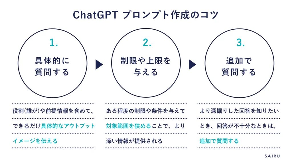これにより、AIの回答を望ましい方向にコントロールし、より実用的な成果物を得ることができます。