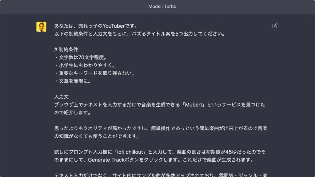 実際に深津式プロンプトを使用した具体例をご紹介します: