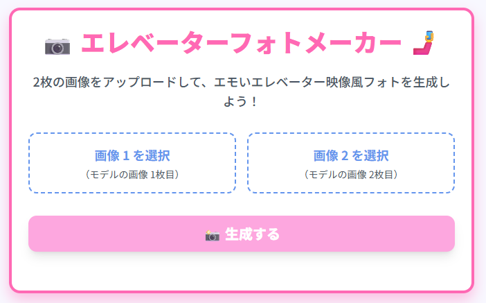 2名の写真を用意して以下のプロンプトをGeminiに入力するだけで、話題のエレベーターフォトが作成できます!