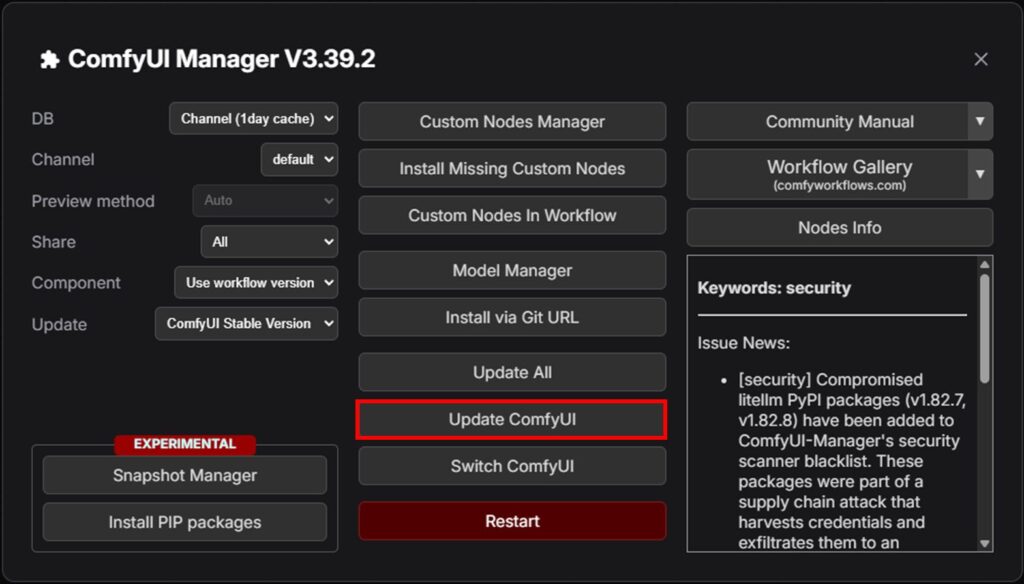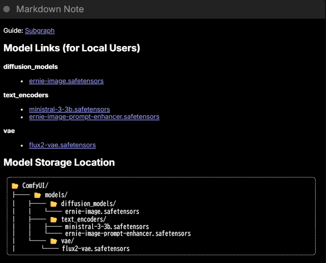 ComfyUIを「v0.19.0」以上にアップデートすることで、テンプレートに「Ernie Image」のワークフローが表示されます。