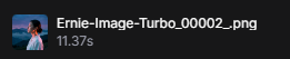 ただ、他にも何枚か生成してみたのですが「Ernie Image Turbo」のほうが若干ノイズが多いものが生成されるかなという印象を受けました。